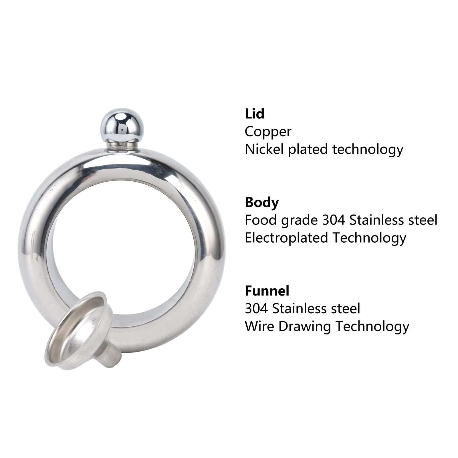 Stainless Steel: Made of food grade stainless steel, thick and polished, resistant, and will not This bracelet shaped flask is and will not break even if dropped
